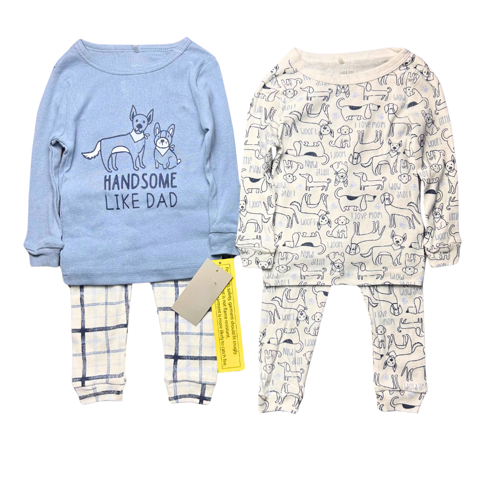 Make bedtime fun with this adorable 2-pack pajama set for baby boys. Featuring playful dog prints and a sweet message — “Handsome Like Dad” — these soft cotton PJs are perfect for cozy nights and morning cuddles.