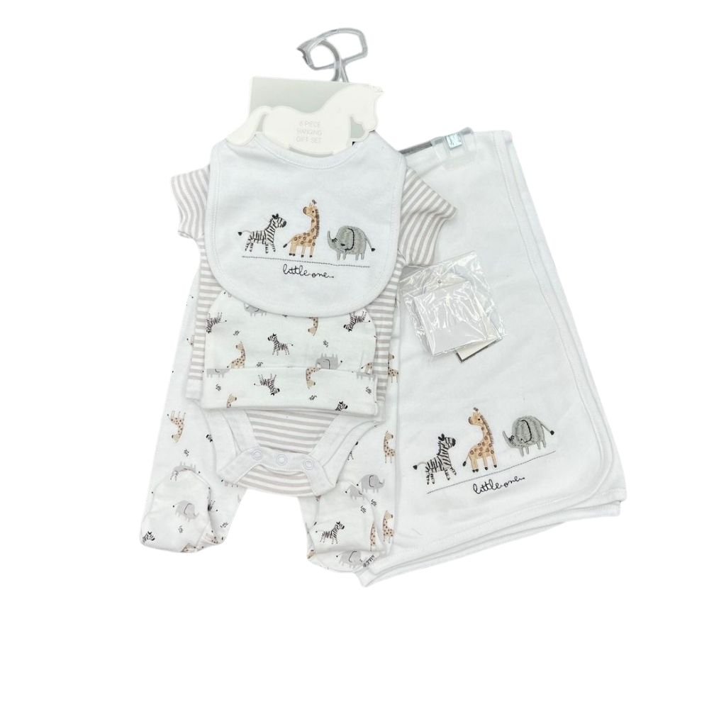 Dress your little one in comfort and style with this adorable 5-piece newborn clothing gift set from Dymples. Designed with soft cotton fabric and playful safari animal prints (zebra, giraffe, and elephant), this set makes a perfect starter pack for your baby or an ideal gift for new parents.