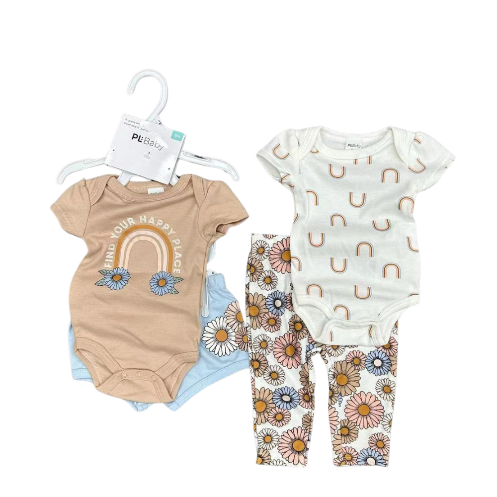 Baby Girl Clothing Set – 4-Piece Rainbow & Daisy Bodysuits & Leggings – PL Baby