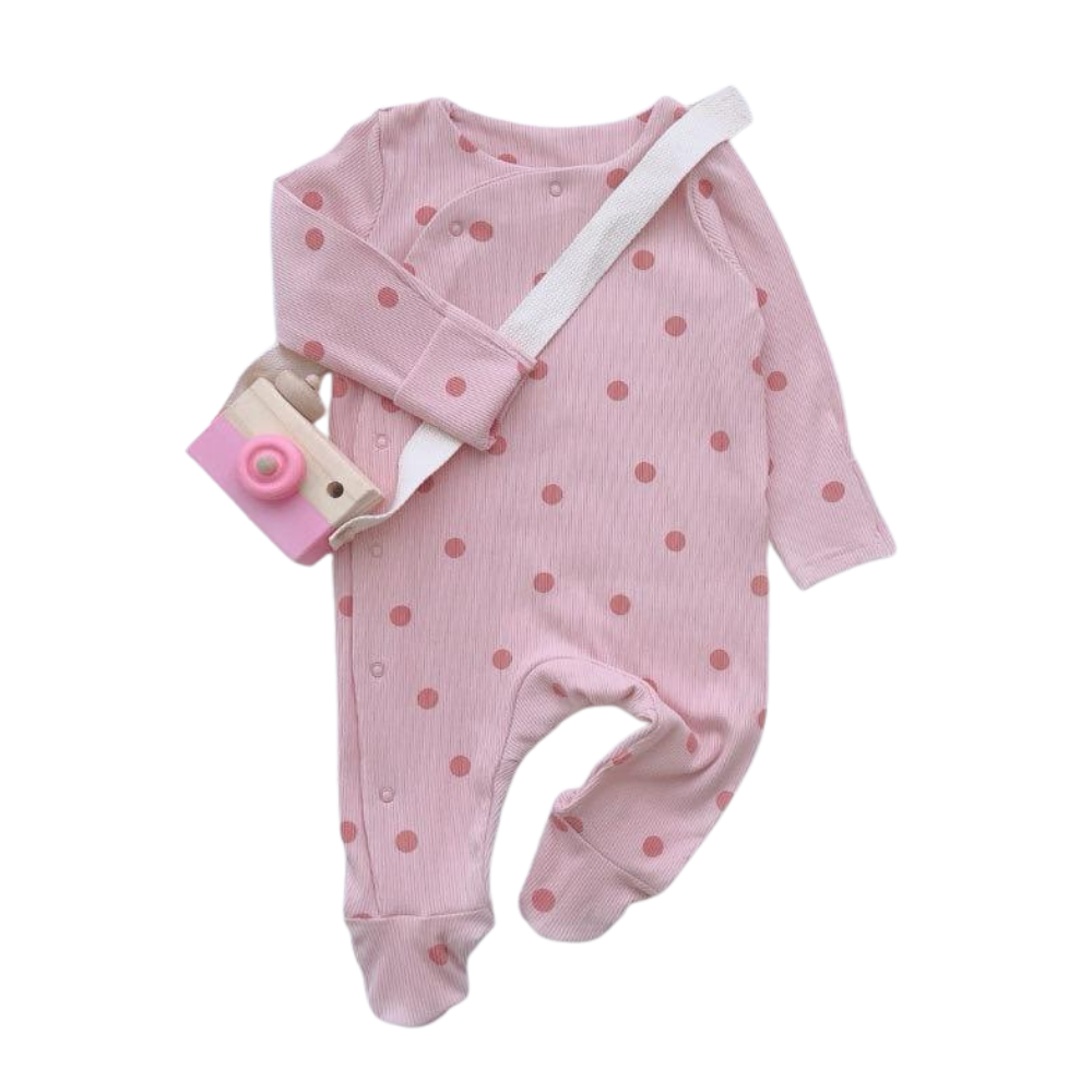 1 x Pink Polka Dot Sleepsuit – Full-length, footed design