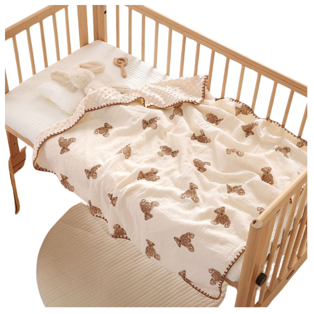 Wrap your little one in charm and comfort with this cream baby shawl featuring an all-over teddy bear print. Crafted from soft, breathable muslin cotton, it’s lightweight yet cozy, perfect for keeping your baby snug in the crib, stroller, or during cuddle time.
