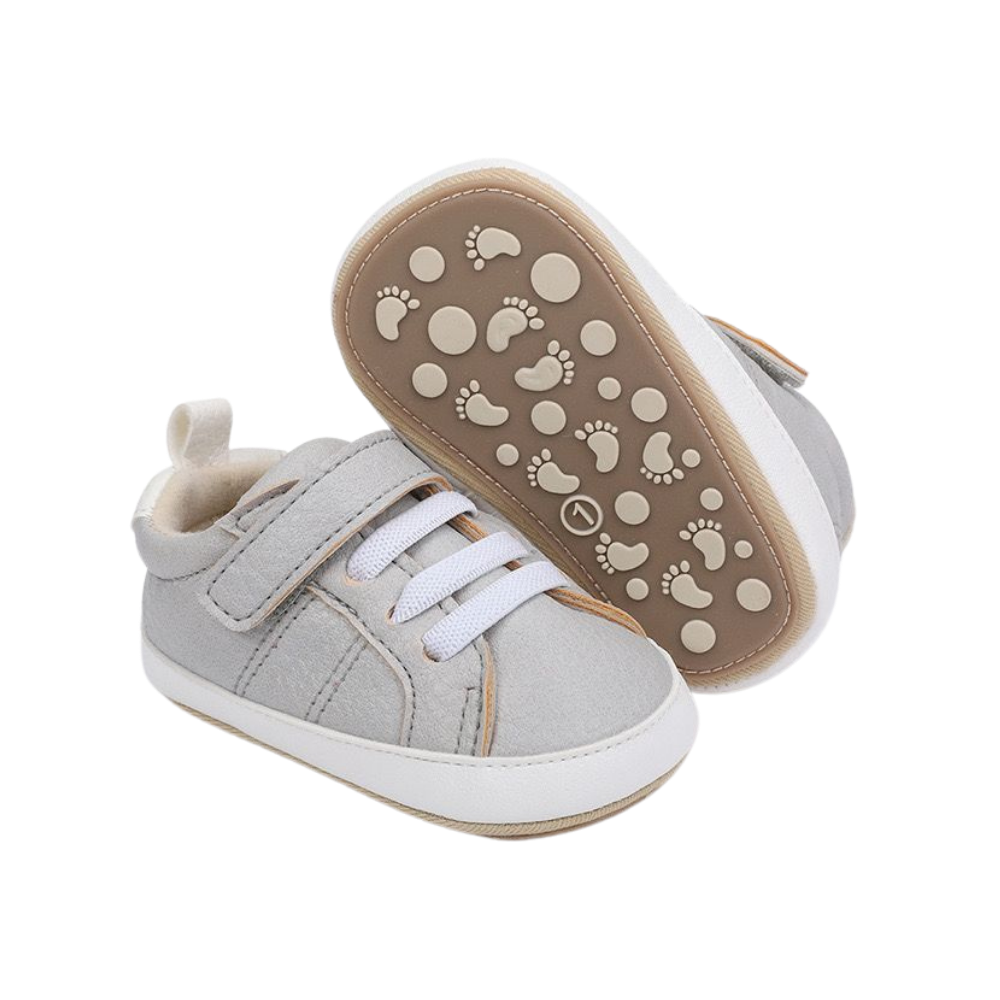 Baby Sneakers – Light Gray with Anti-Slip Sole, First Walker 6–18 Months