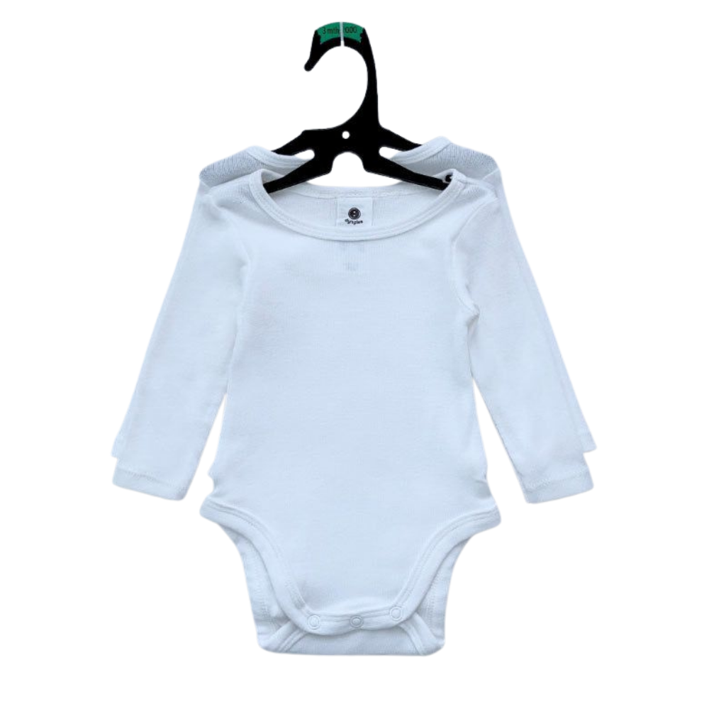 Bodysuit – 2 Long-Sleeve Plain White, Baby Unisex 0–6 Months – Dymples