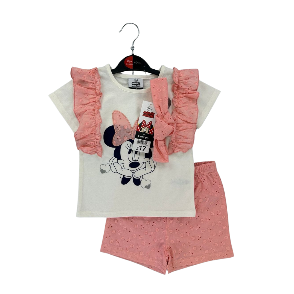 Girls’ Outfit Set – Minnie Mouse Ruffle Tee & Pink Shorts, 2-Piece – George