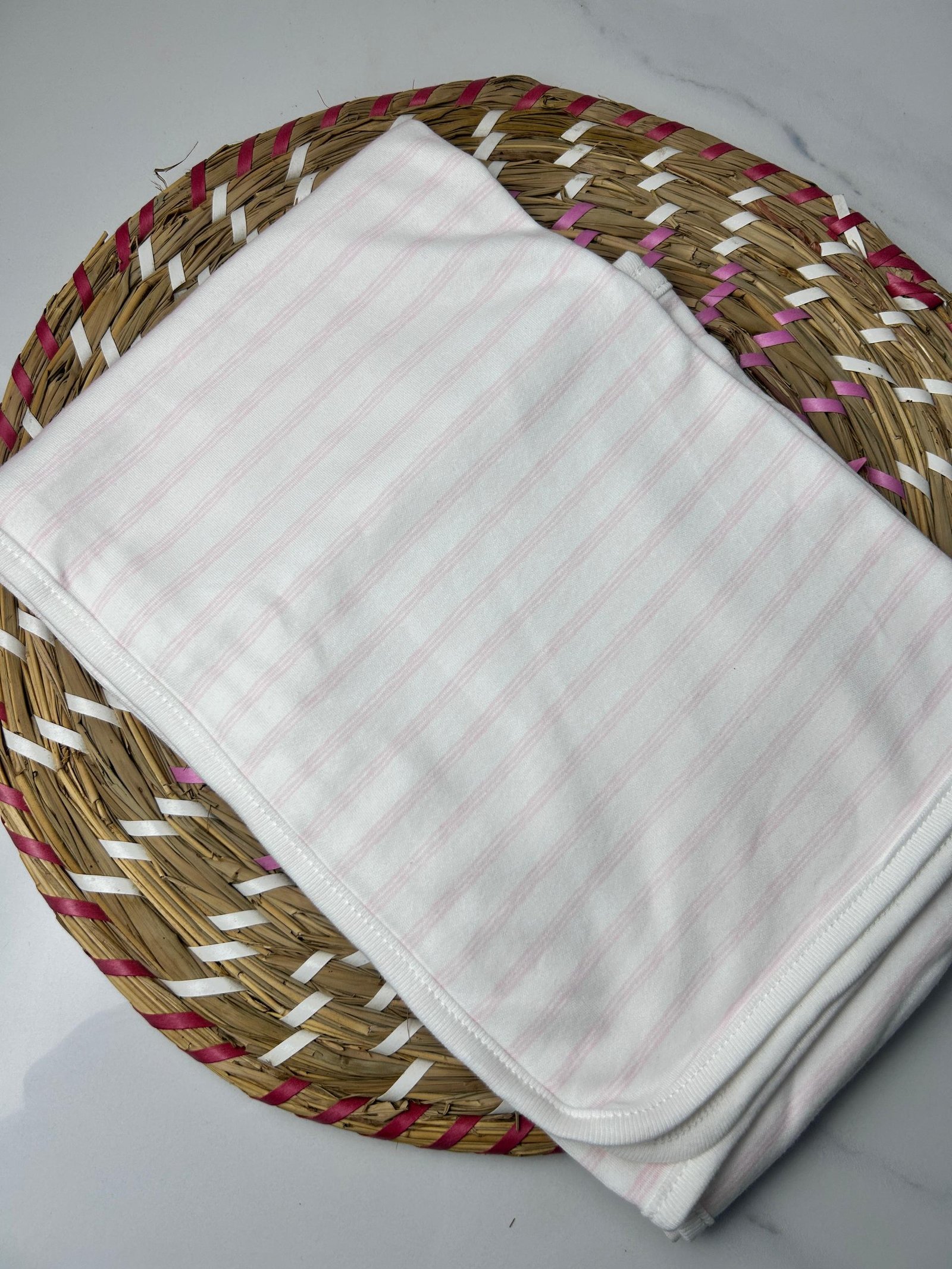 Bring comfort and cuteness together with this pink & white striped baby swaddle blanket. Made from soft, breathable cotton, it’s designed to keep your baby cozy and safe while ensuring enough airflow to prevent overheating.